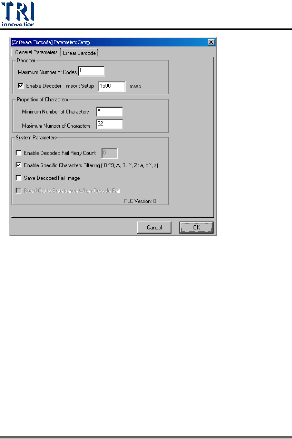 Maximum Number of Characters–欲解析的條碼字串最大可能的字元數。系統預設