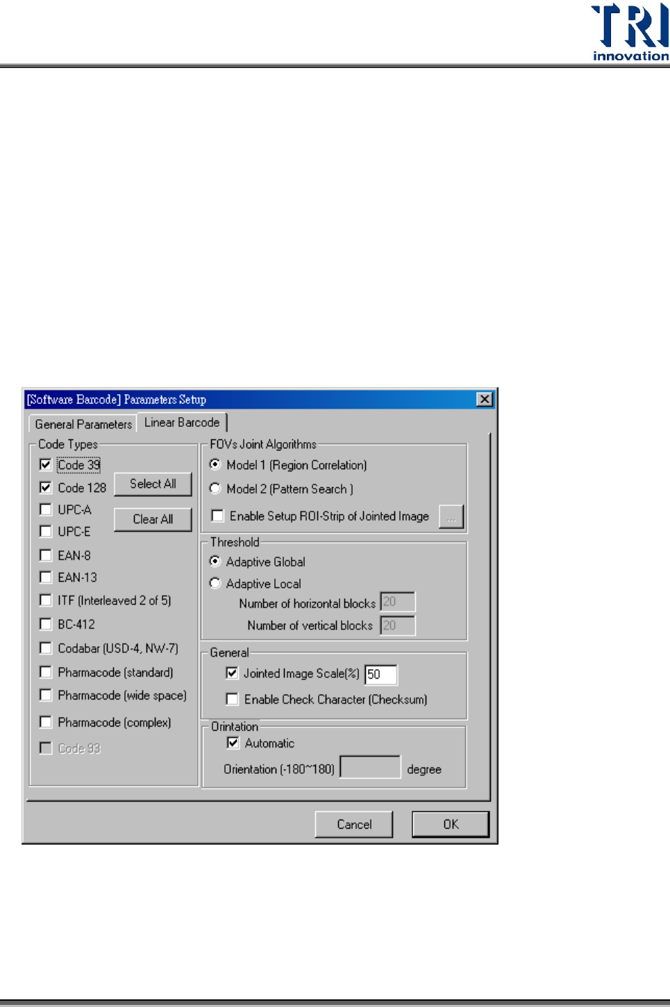 在此由條碼解碼的運算過程說明此參數意義。原始的條碼影像輸入後,需先