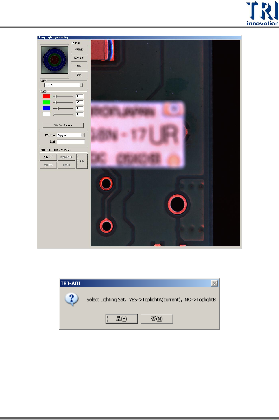 當選擇[取消],會出現以下視窗。選擇[是]會使用 ToplightA 的光源設