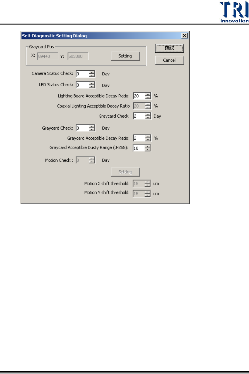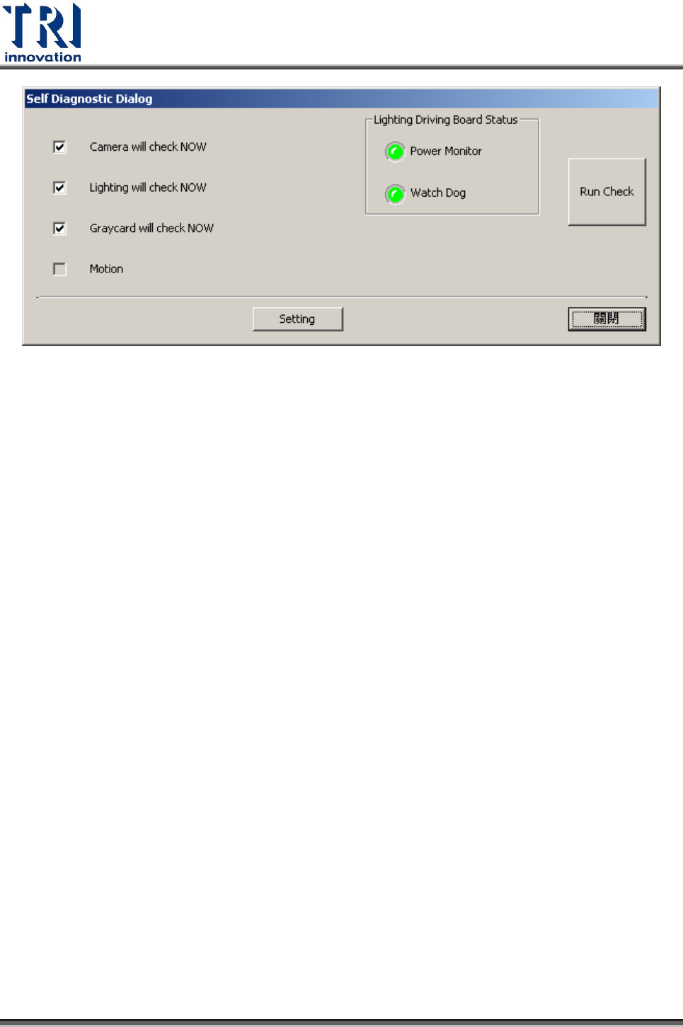 4. Setting:開啟 Self Diagnostic Setting Dialog 對話視窗,用來設定自我檢測所需的