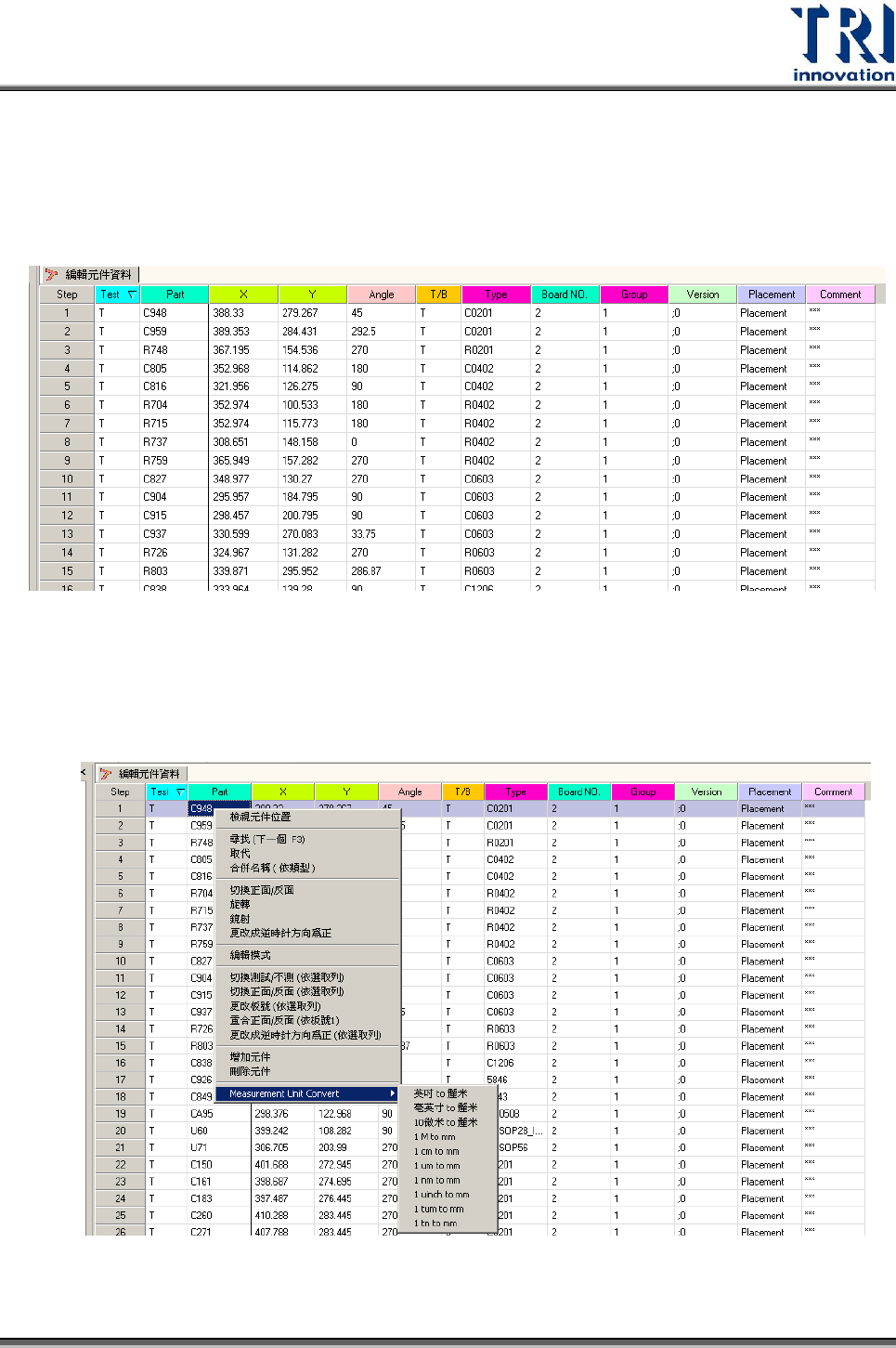 件資料進行編輯,直到資料符合實際資料為止。若為待測板為多連板則需將此元件資