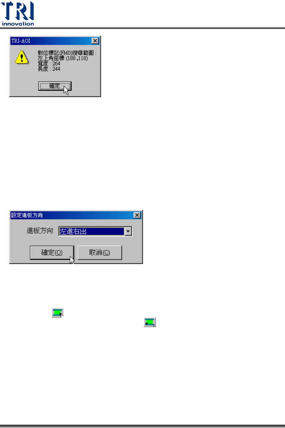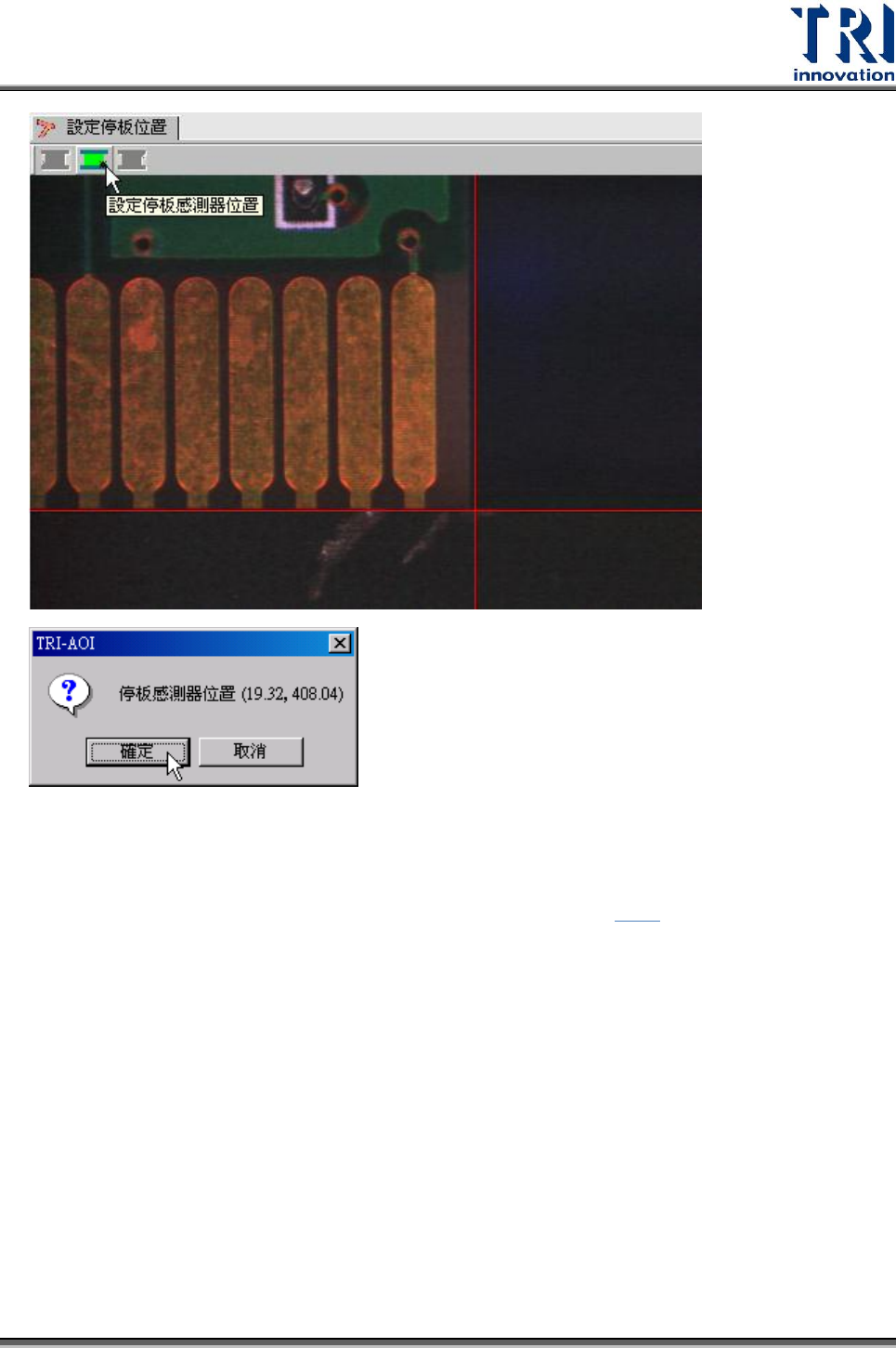 影機移動至電路板之左下角位置,接著按下 按鈕,設定停板感測器位置。