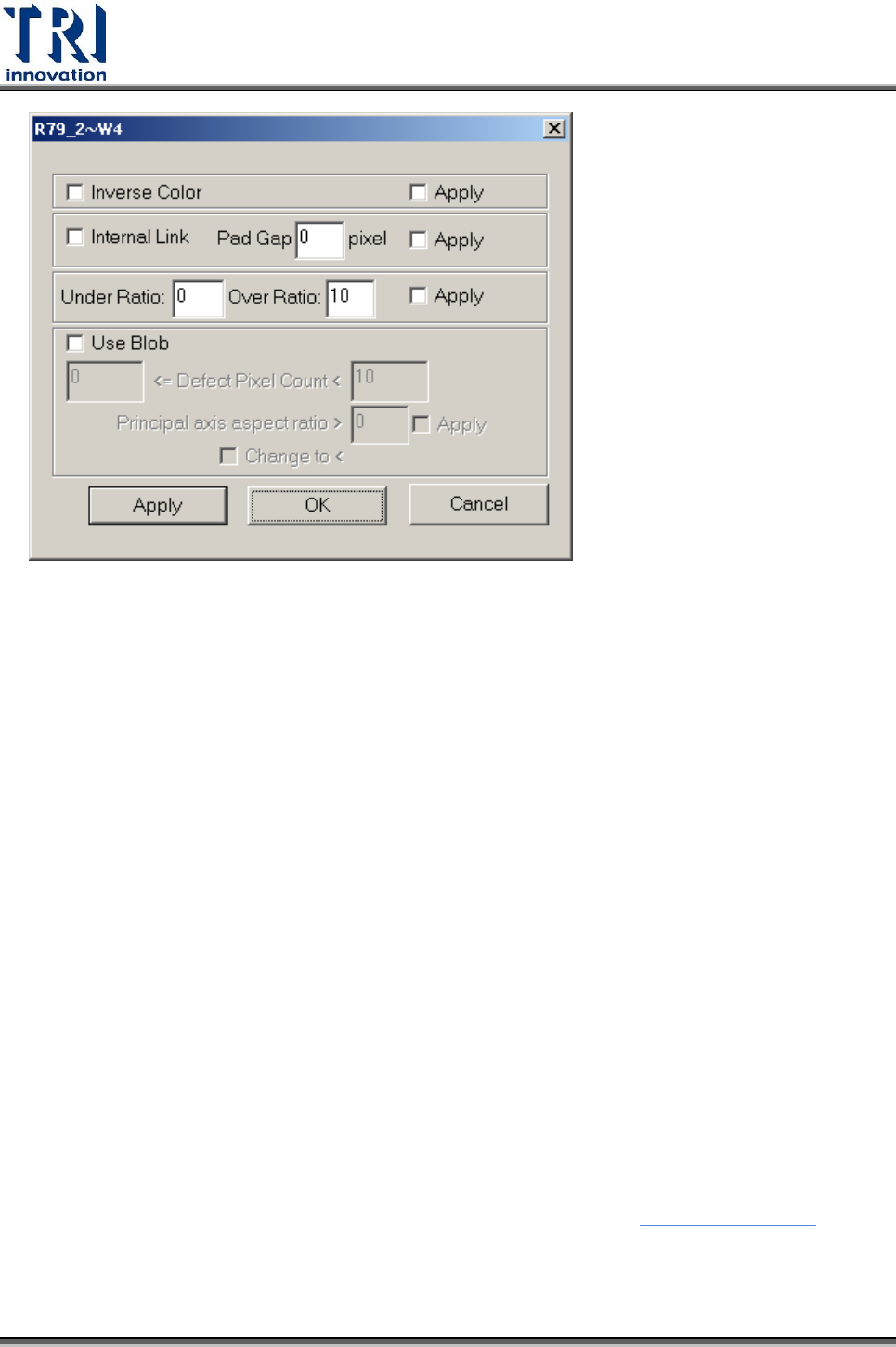 Under Ratio:面積小於此值則 fail (default :0) 。