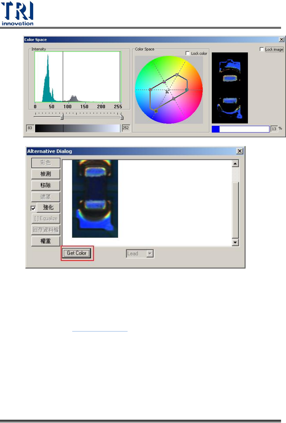 3. 使用 Get Color 將 Color Space 內的色彩參數套用到比對條檢視窗內。