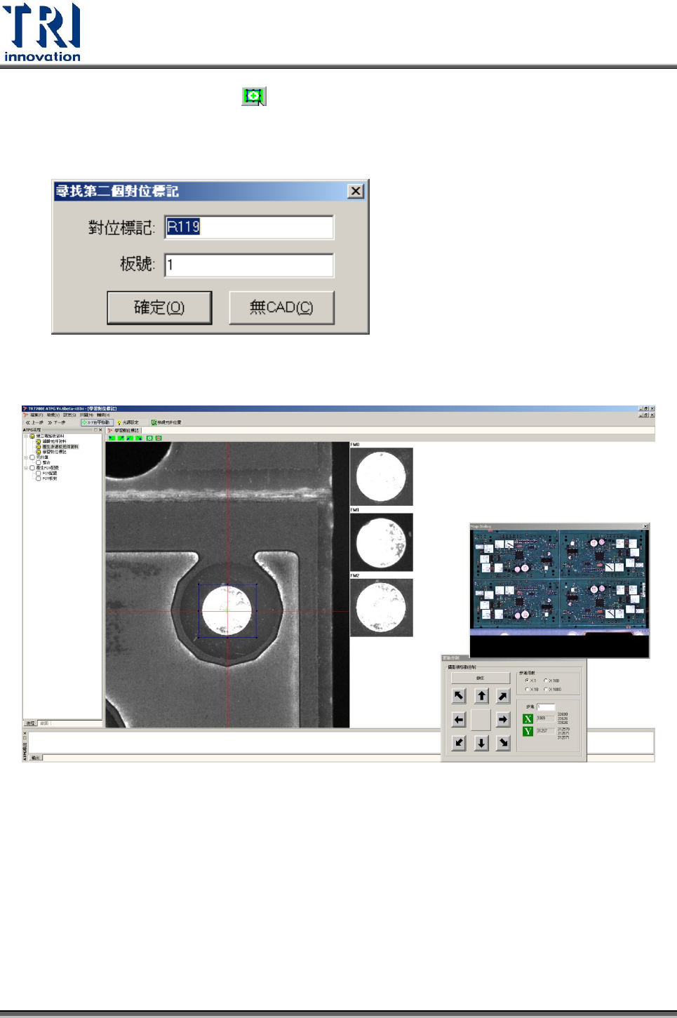 Test Resear ch Inc. 34 TR 7700 S II User Guid e – Softwar e 10. 如果使用多標記點功能 ( 註冊表中 MultiFM=1) ,此時可以繼續增加標記點數量而 不會做標記點重複學習,目前數量最多可至 18 個。如果需要重新設定對位標 記,可以選擇 [ 設定 ]>[ 清除所有對位標記 ] 後,再次重新設定所有對位標記。 11. 按 [ 下一步 ] 按鈕,會出現以下視窗,按下 …