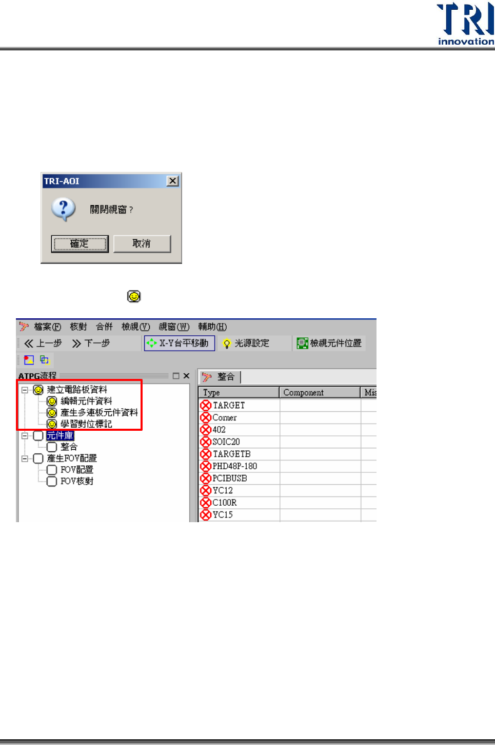 像等等。所產生的元件資料庫將被儲存在[C:/AOI/TRI_USER_LIB]資料夾中。