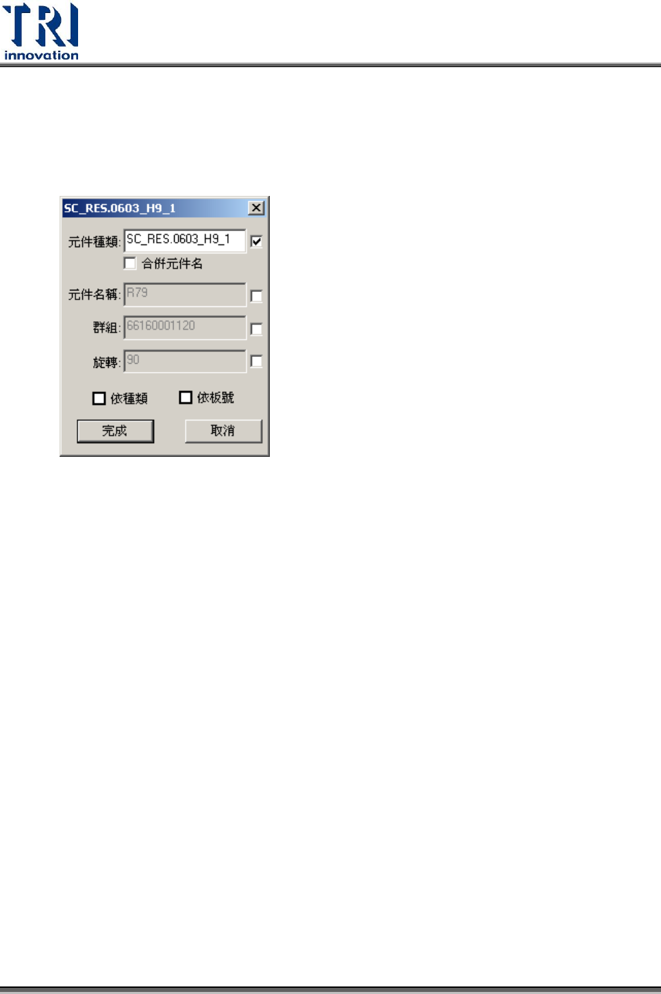即可完成本顆元件內容的些改。若要使用[依種類]或[依板號]來修改多顆元件的