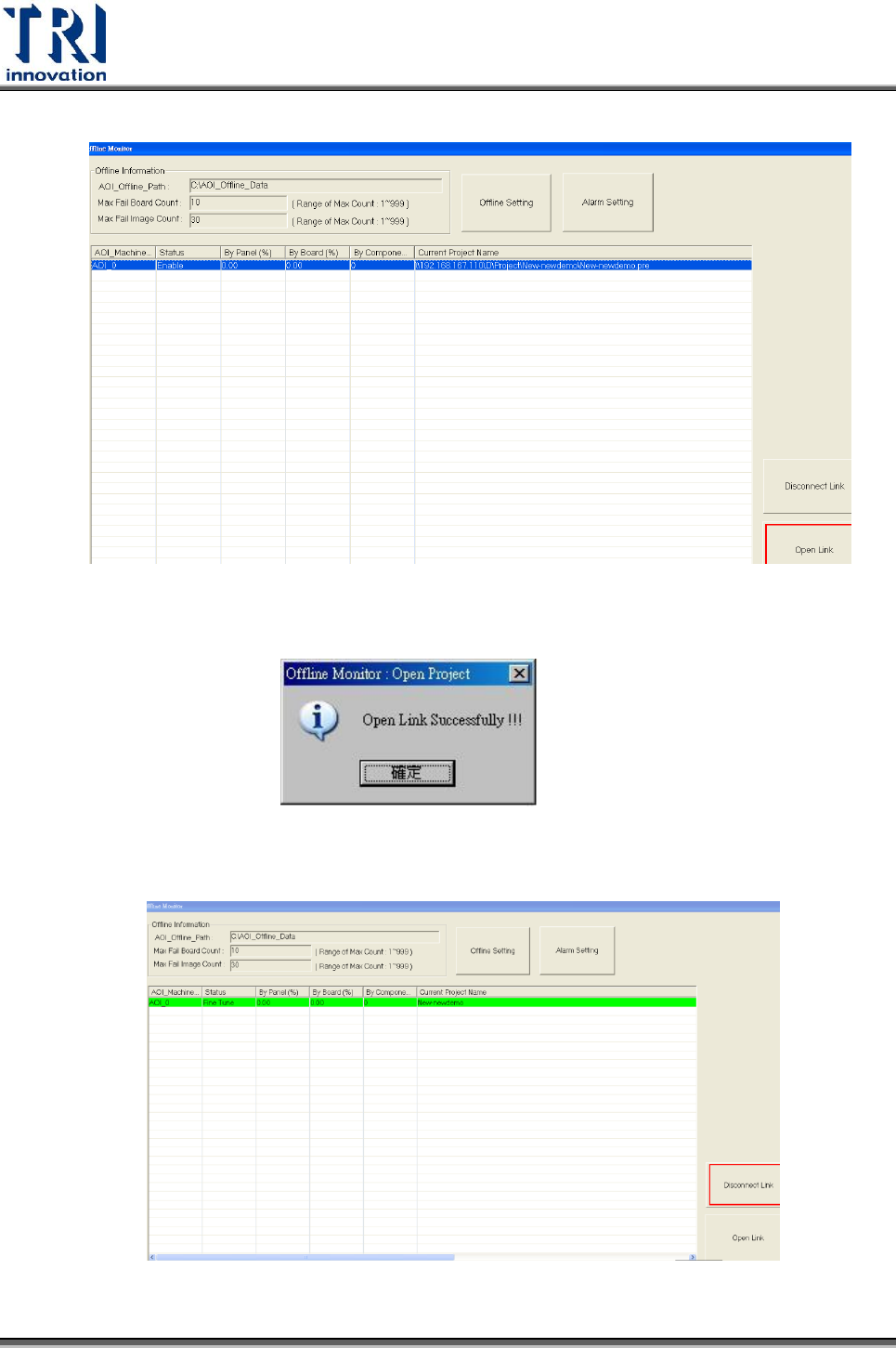 e. 選擇[Open Link]:開啟所選取的連線狀態的機台,準備進行 fine tune