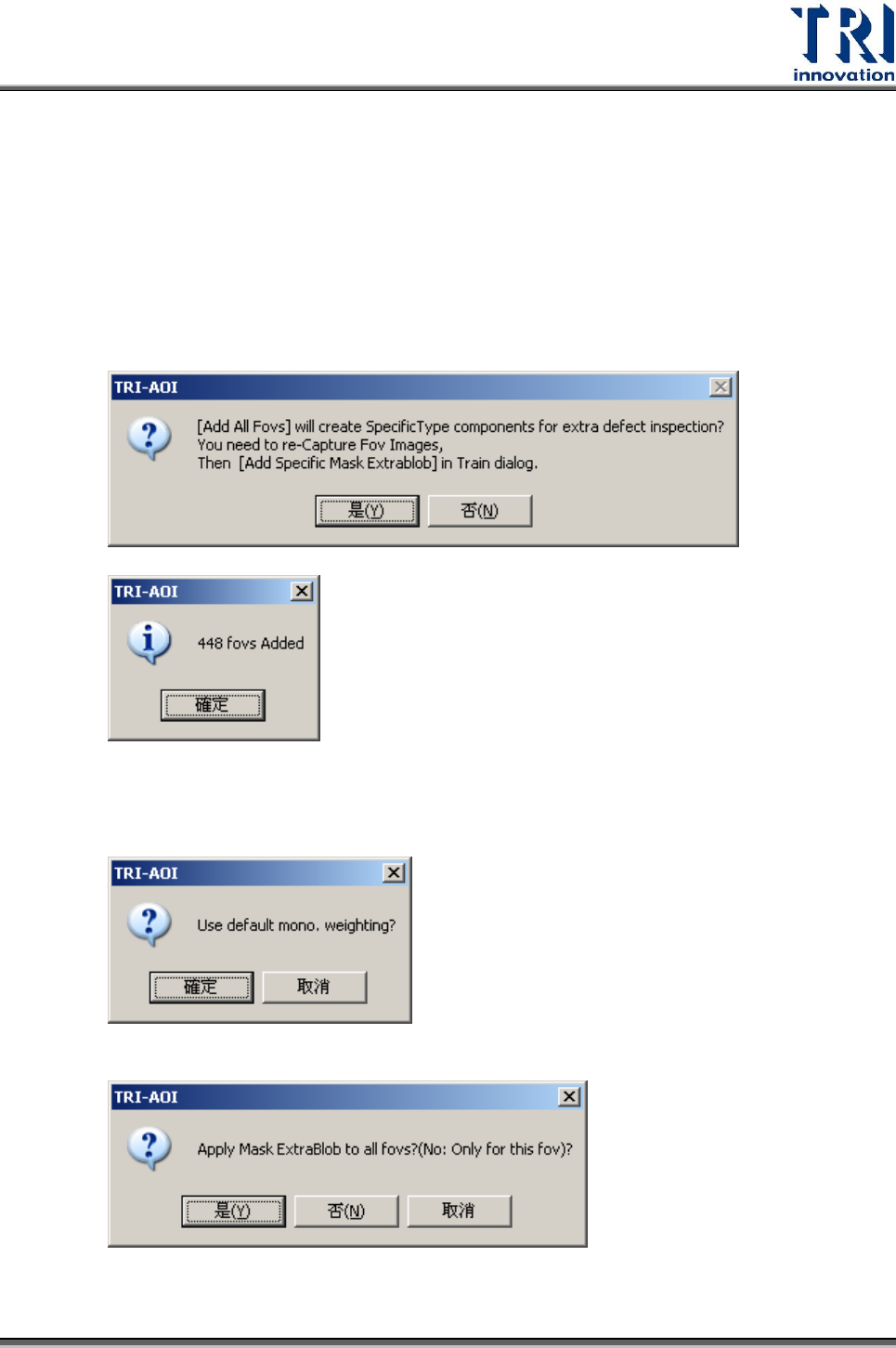 7. 點選[確定]後,會出現以下視窗。選擇[是]將會套用到所有的 FOV,選擇[否]