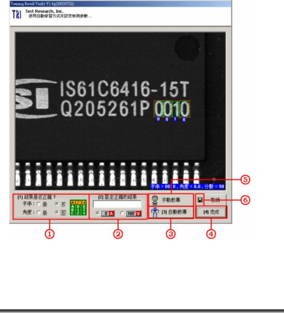 當搜尋結果錯誤時,於「Result is correct?」窗口內選擇字串及角度是否正確。