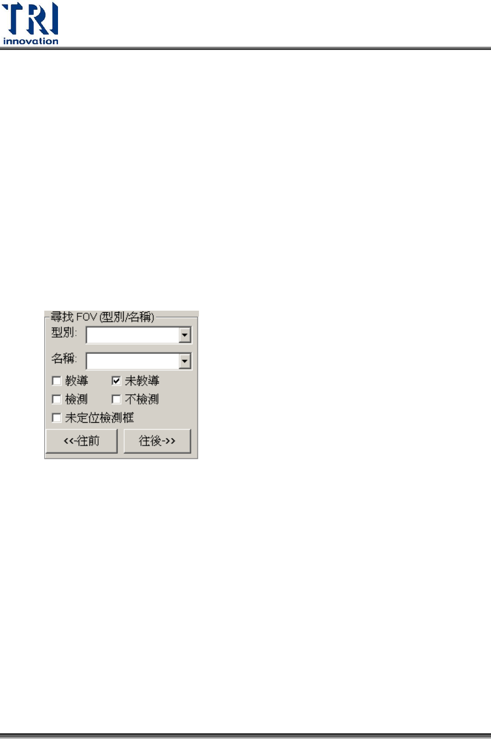 4. 可在尋找 FOV(型別/名稱)功能欄內,勾選[未教導],並且按下[往前]或者[往後]收