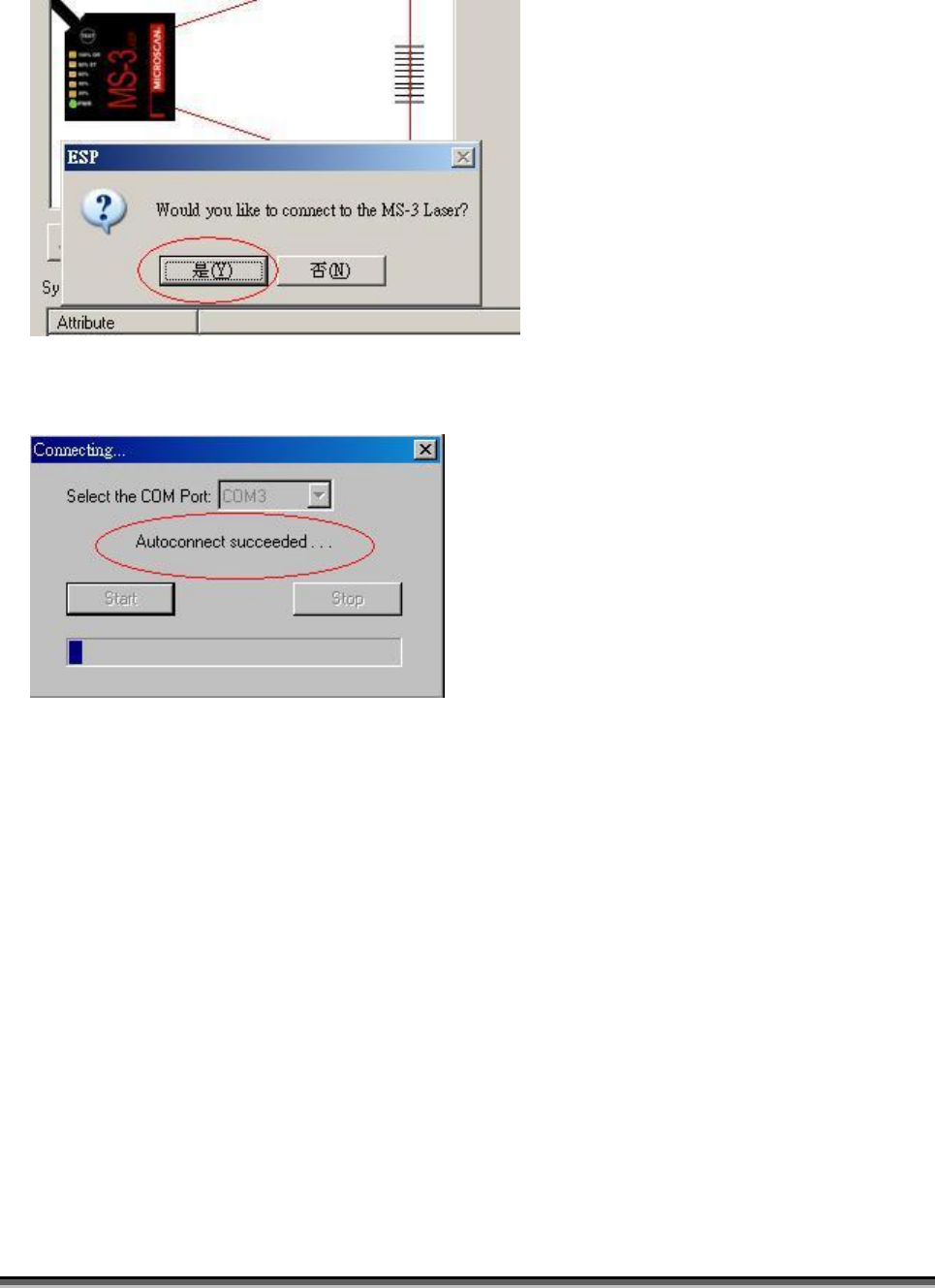 5. ESP 會詢問條碼器預先的設定埠(COM Port),AOI 機台目前預設為 COM 3,如果