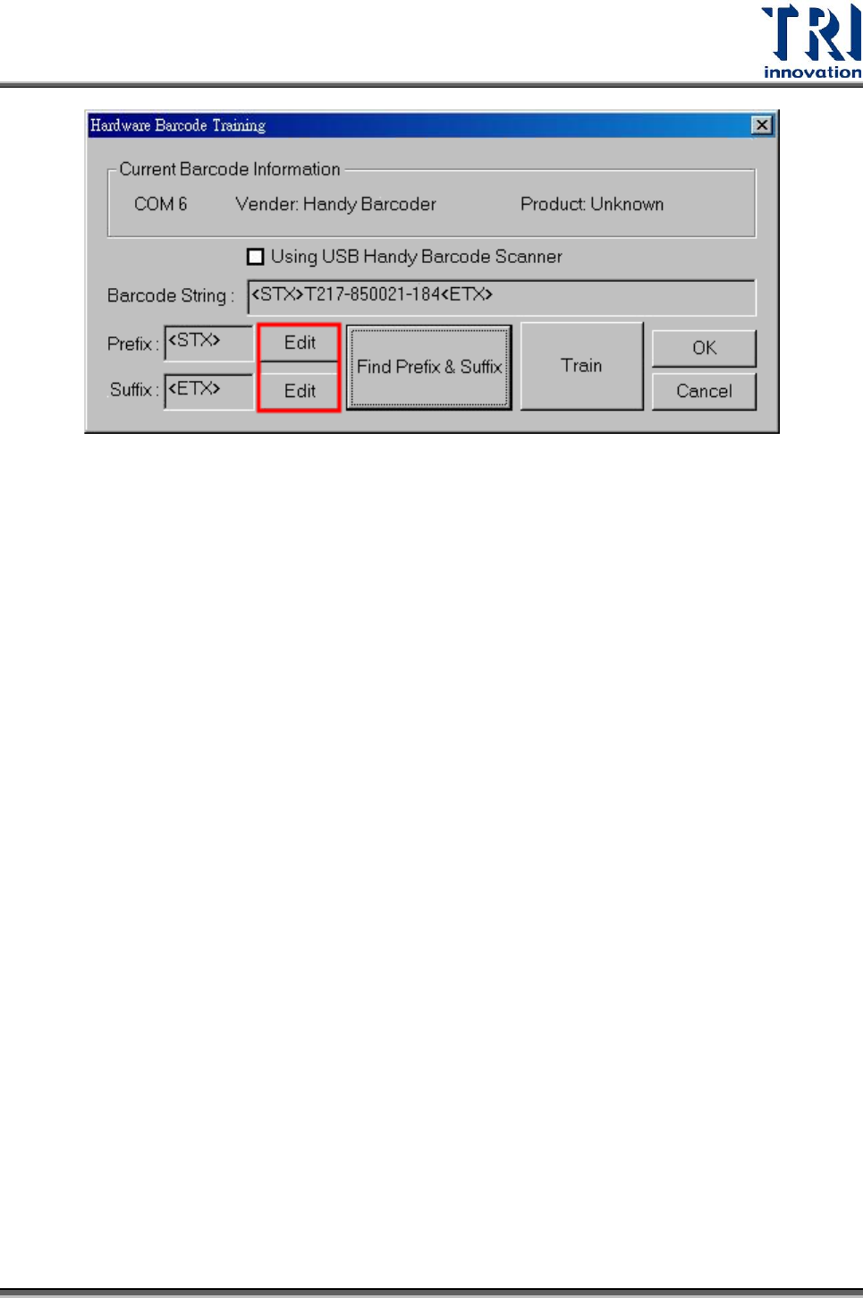 Stpe4. 系統會自動顯示推測的前後置碼。在本例中,前置碼為[STX],後置碼