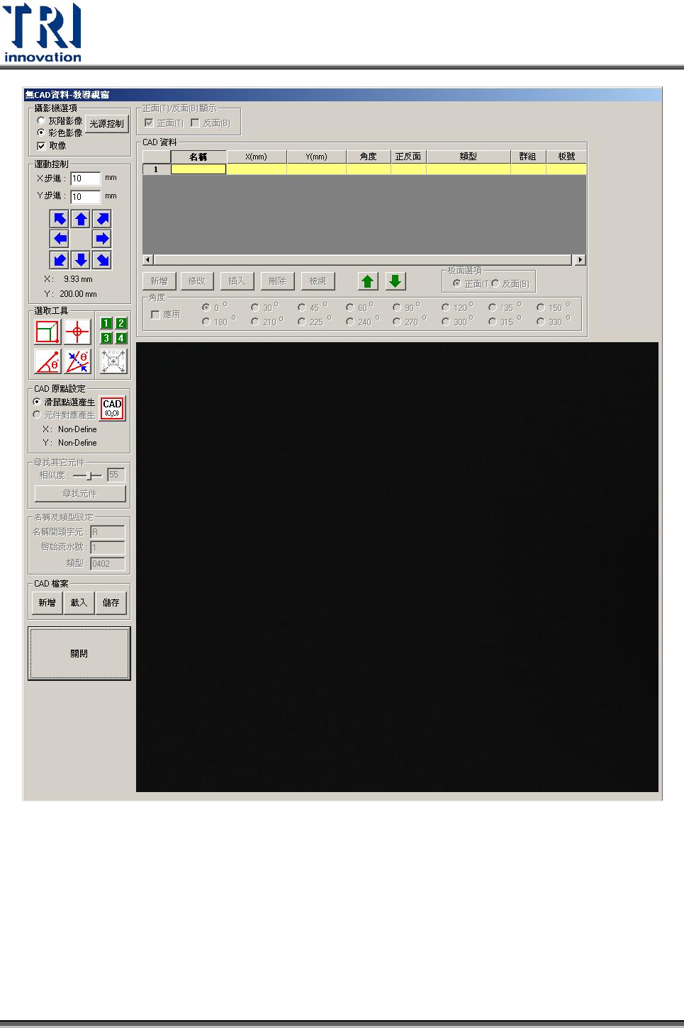 Test Resear ch Inc. TR 7500 Series User Guide – Soft ware 163 3.4.10.8 新 Non CAD 製作方式 ( v. 3. 6 版本後 ) 為節省標準 Non CAD 程式製作時間,本方法採用在 8X8 的大圖影像上進行。使用本 Non CAD 功能,系統可自動判定元件角度,可完全於離線編輯器上製作。 Step1. 在登錄檔中新增 DWORD 參數 Newnoncad = …