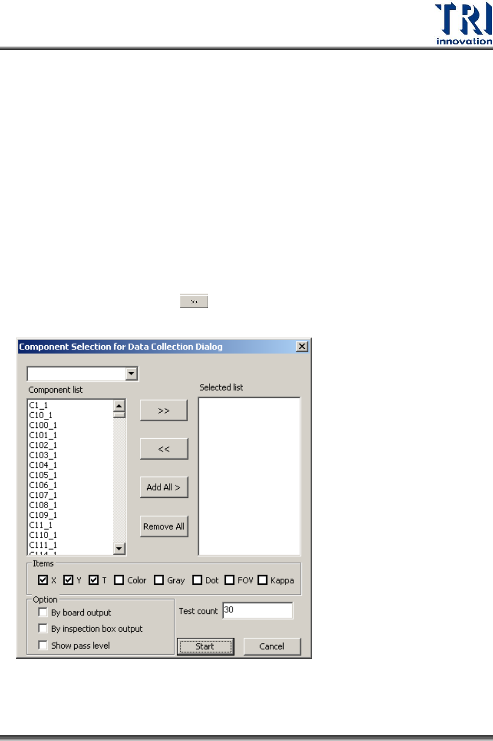 Test Resear ch Inc. 200 TR 7700 S II User Guid e – Softwar e Fov 影像 傳送標準板子的 FOV 影像到維修站。使用步驟如下: 1. 選擇 [ 工具 ]>[ 擷取 FOV 取像 ] 功能,將標準板的影像,存到 [FOVImage] 資料夾下。 2. 選擇 [ 工具 ]>[ 重送影像資料至維修 ]> [Fov 影像 ] 。 3. 此功能會將 [F OVImag…