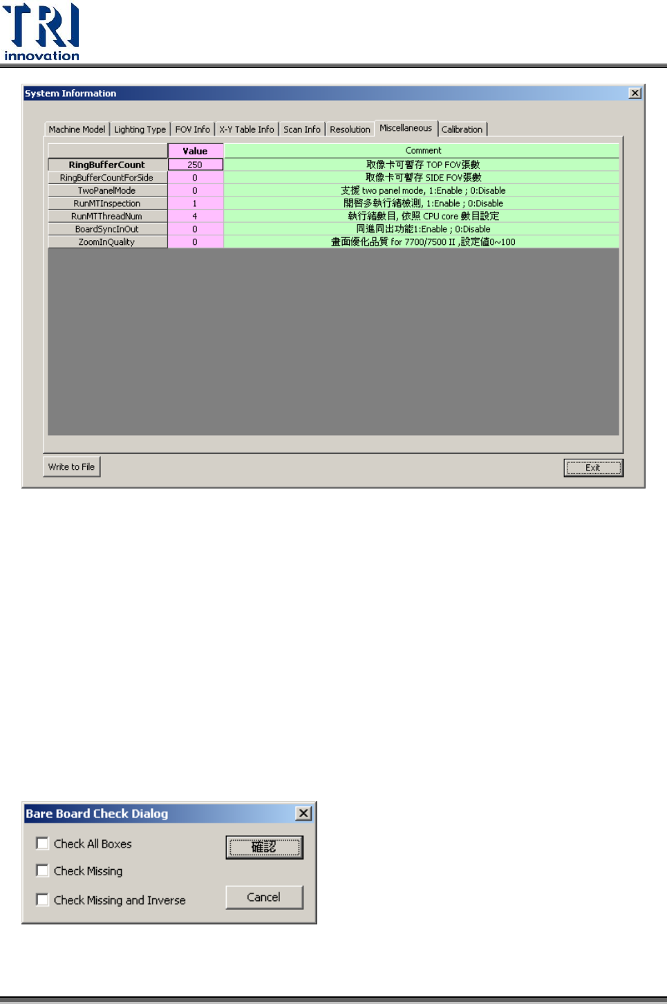 可利用本功能對於空板進行檢測,檢測結果會找出在空板時亦會通過的檢測框,使用