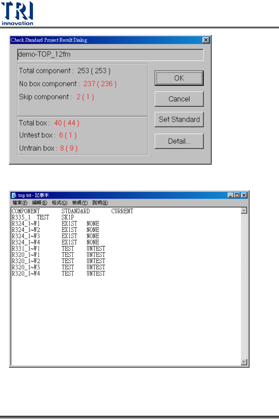 Detail:顯示詳細比對資料,如下圖所示。
