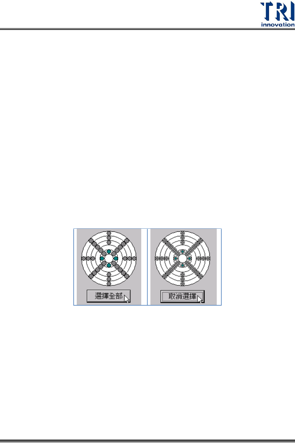 12. 選擇全部:按下此按鈕可將所有 LED 的控制區域開啟,按下後按鈕文字將變成