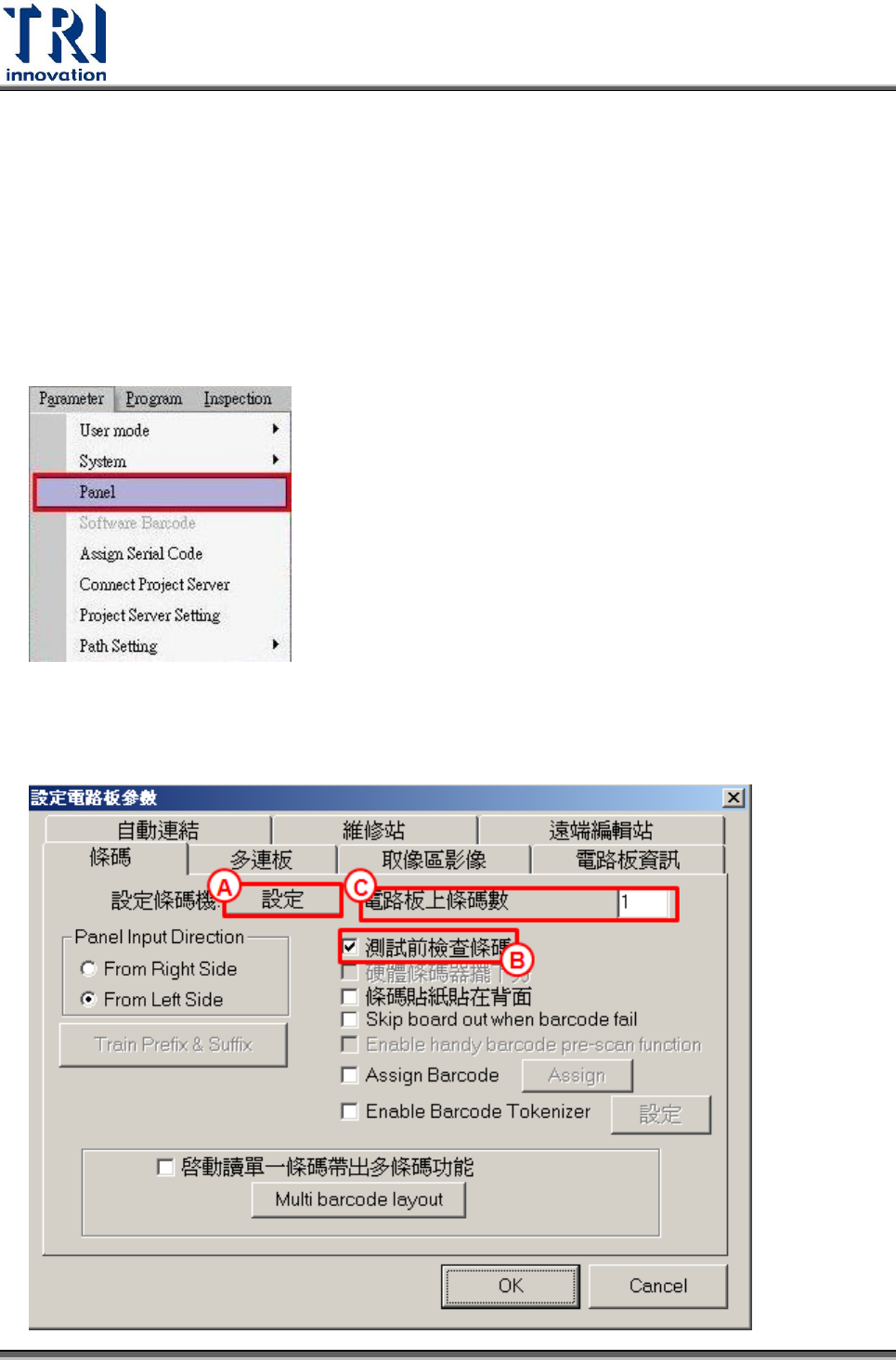 1. 啟動硬體條碼設定 ( Parameter Panel )