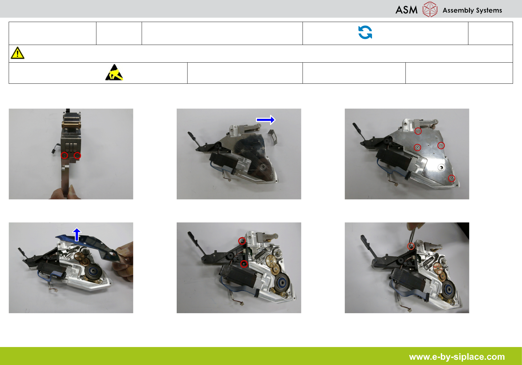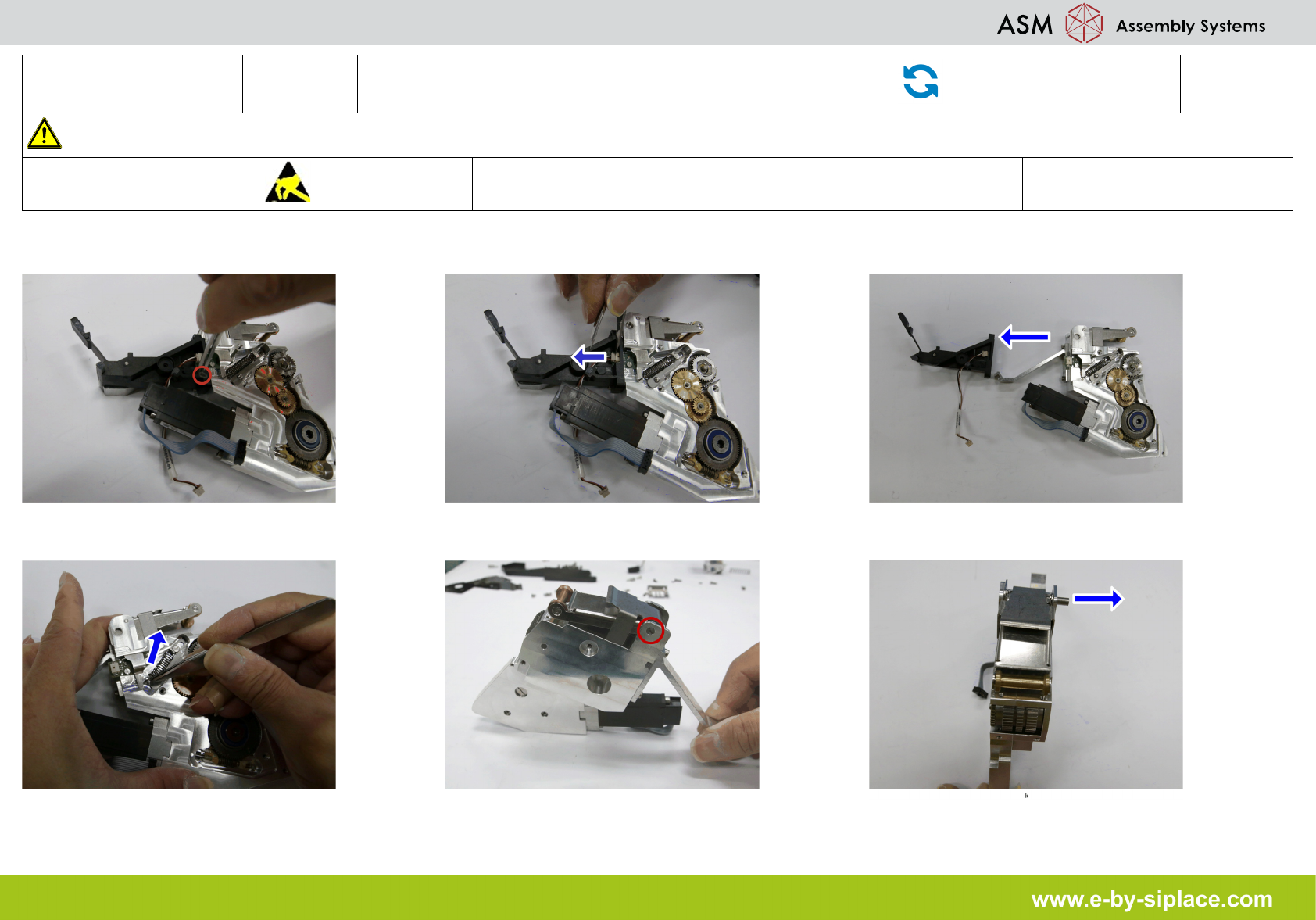 E-by SIPLACE Smart Feeder 32 mm E Removing the Foil Rocker Part Exchange 5/12 CAUTION! Refer to safety inst ructions in user manual before working on the machine. ESD guidelines are to be followed Tool: T1,T5 Wear Part: …