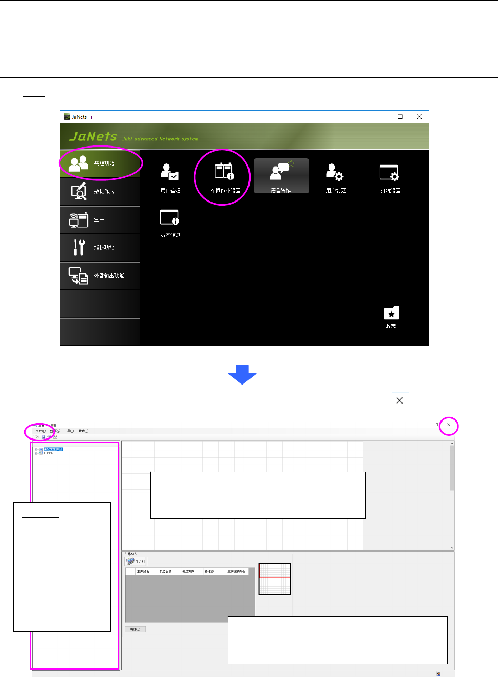 启动:请双击 JaNets 平台的「共通功能」选项卡里的「车间作业设置」。