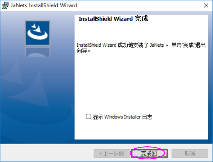 JaNets 使用说明书 2 安装 2-15 (5) 安装结束后,会显示如下画面。请点击「完成」 。 JaNets 的安装即告完成。 JaNets 的安装到此结束。