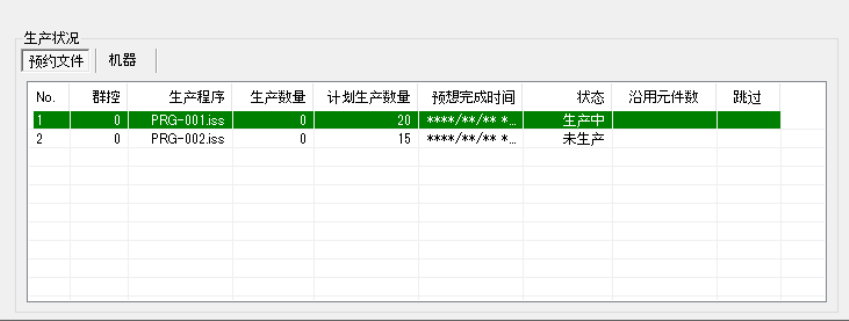 至此,结束了后续生产程序的预约。已预约的生产程序信息和生产枚数显示在「生产状况」面板上。