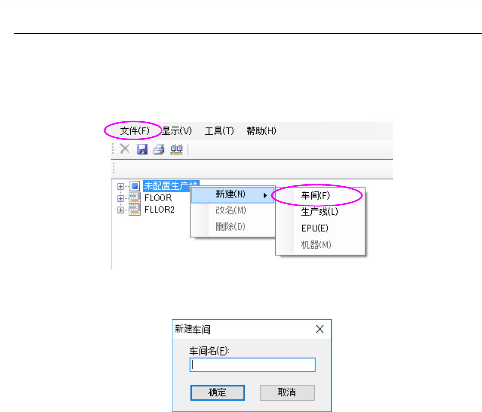 选择未配置车间构成树形的生产线阶层,或选择车间阶层的状态下,应执行以下①、②中任意一