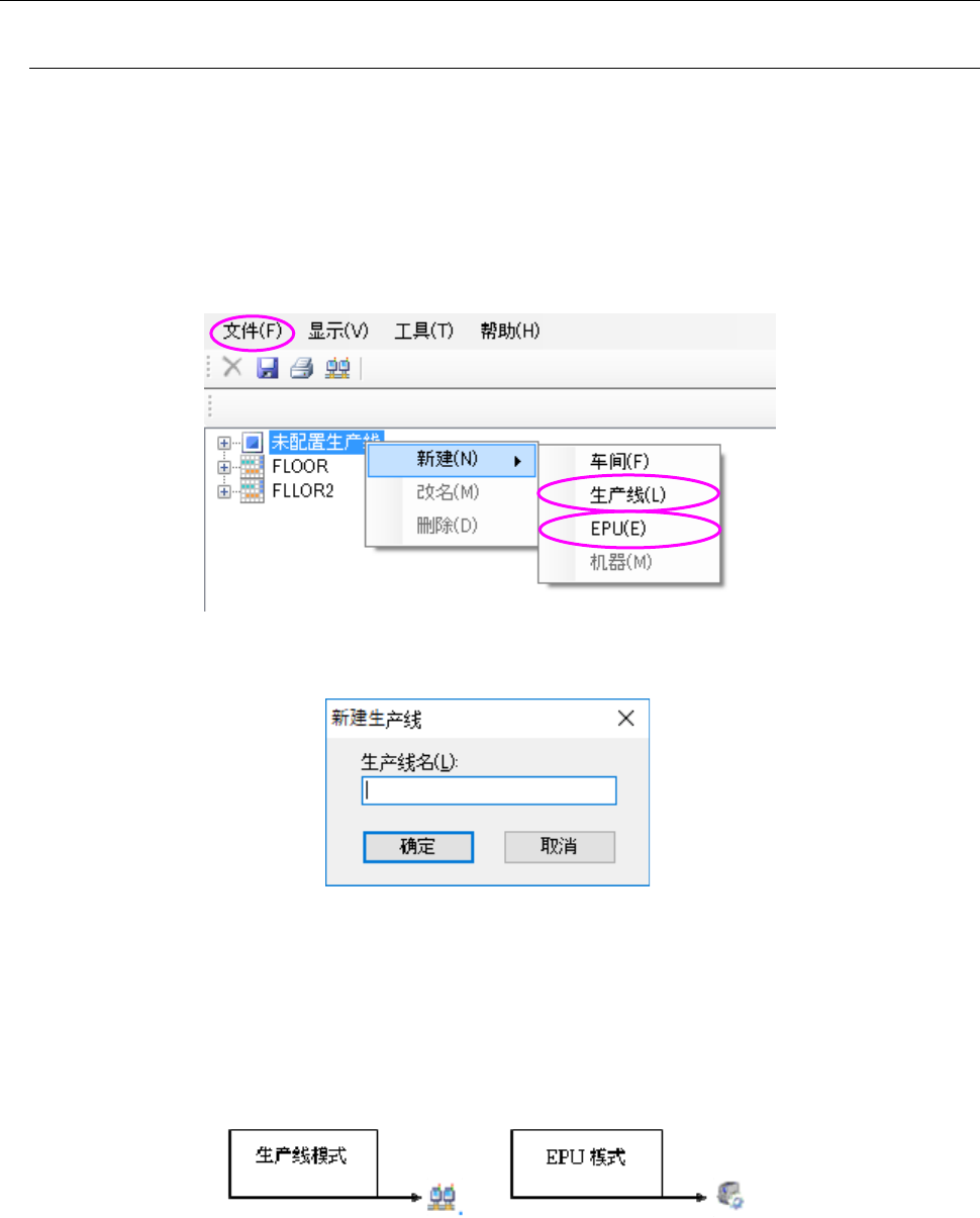 ②点击鼠标右键,在显示的弹出菜单里选择「新建」‐「生产线」(或「EPU」)。
