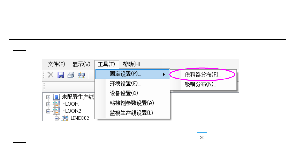 启动:从「车间作业设置」的菜单栏「工具」‐「固定设置」中选择「送料器分布」。