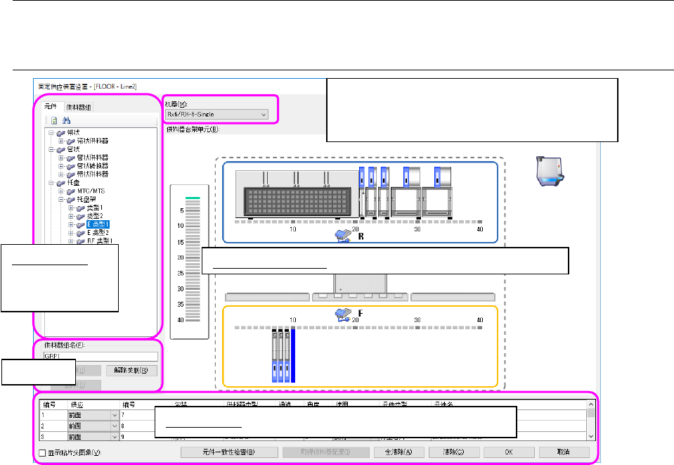 供料器台架单元画面:设置机器里的供料器(固定供应元件)。