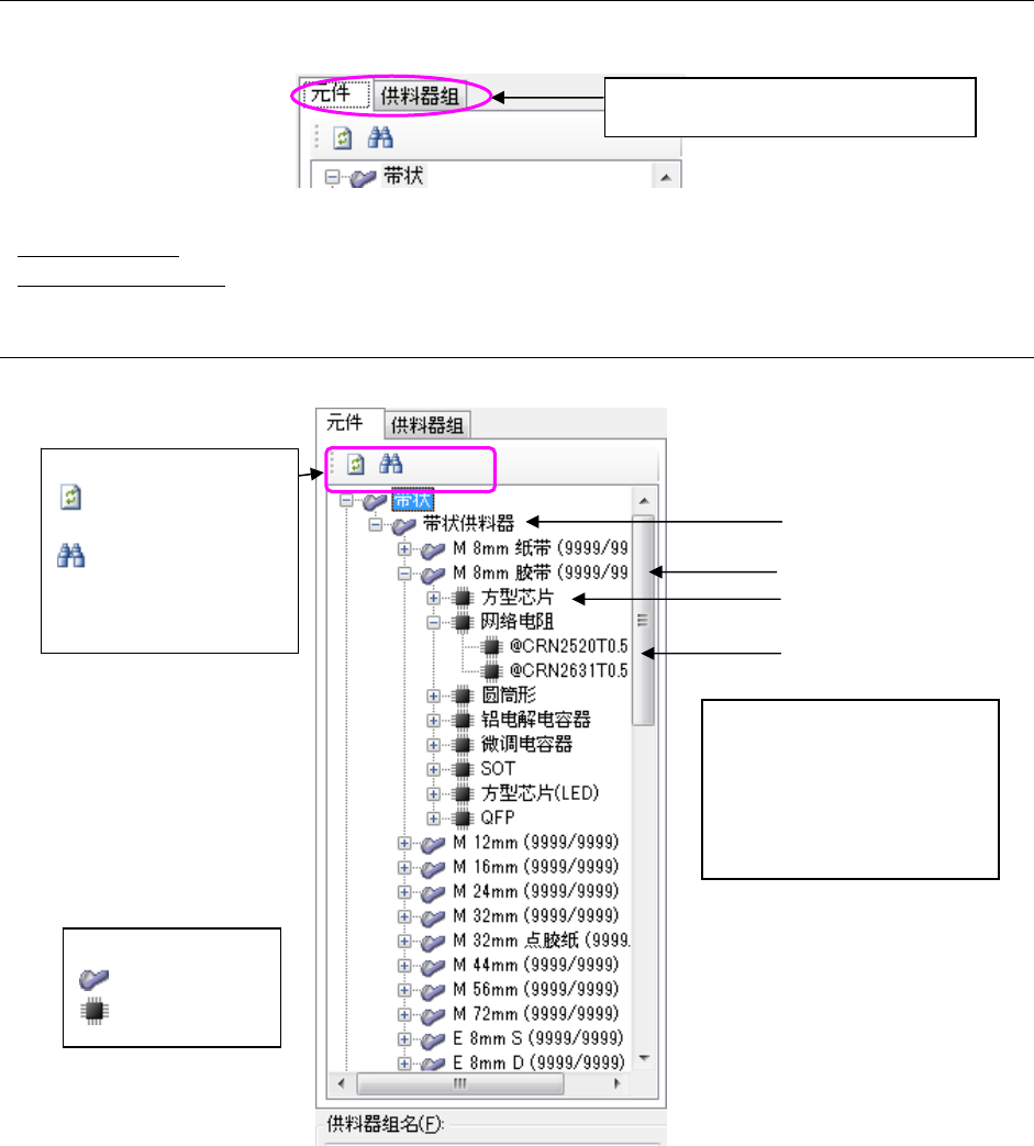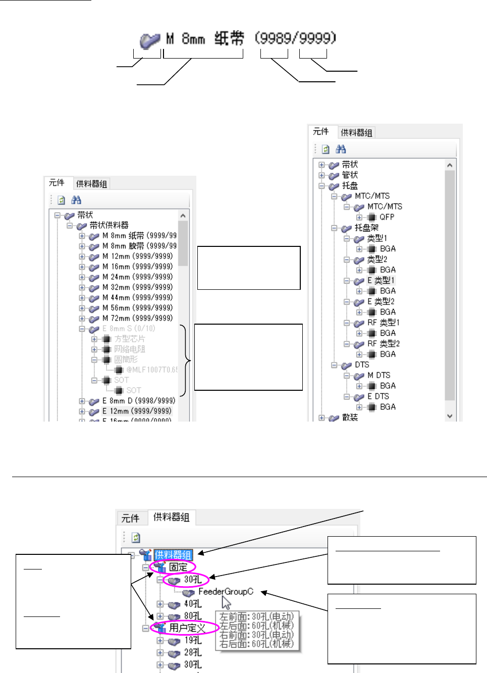 ※ 如果元件信息对机械和电动两者的送料器都可使用,树形显示中将分别显示机械送料器和电动送