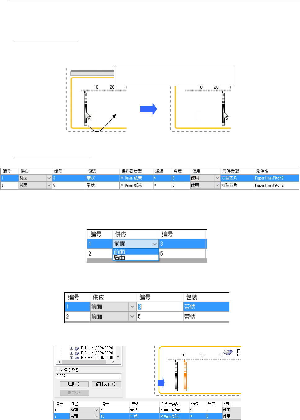 对有多通道的送料器的配置进行变更,有变更送料器本身的配置,及移动已被配置的通道两种方