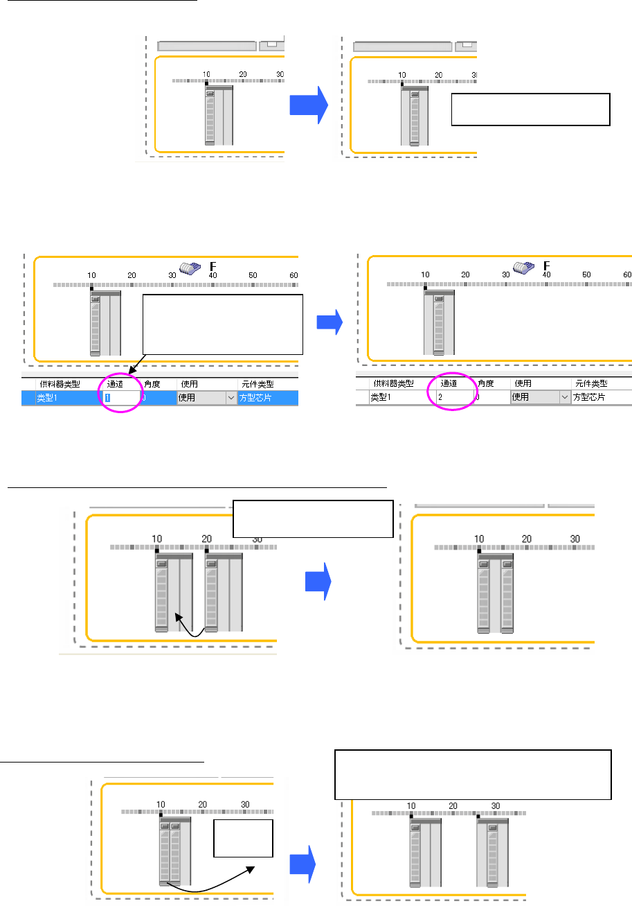 图 5-9-5-23 通道移动前后(在不同的送料器之间移动)