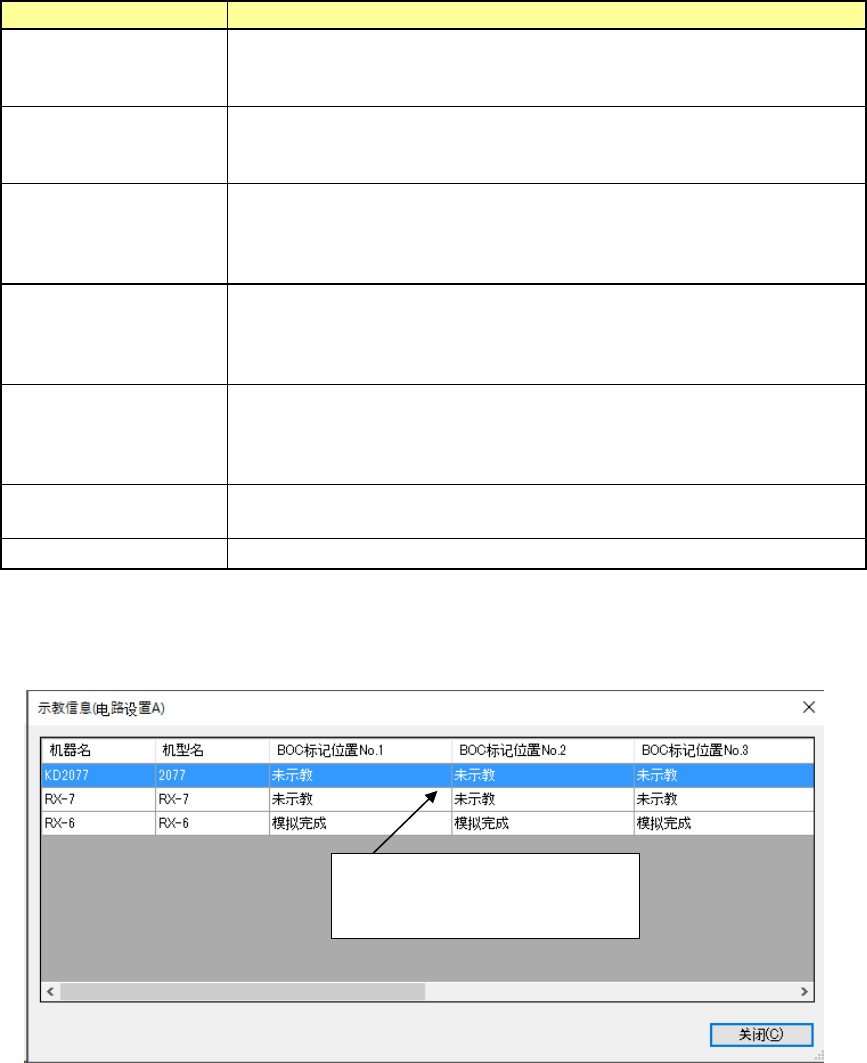 按下[示教信息]按钮时,可显示生产线上配置的机器的标记数据设置状况。