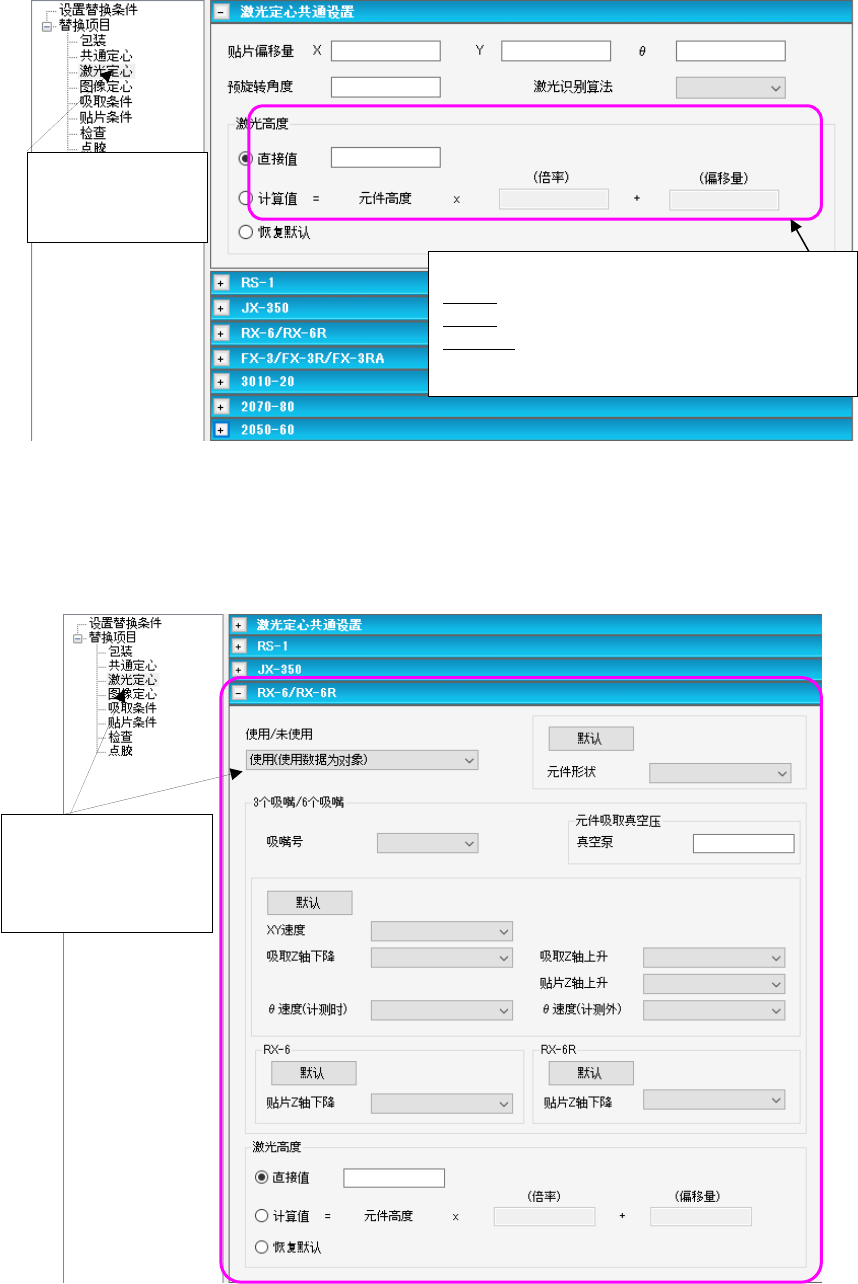 (4)替换项目(激光定心(激光定心共通设置))