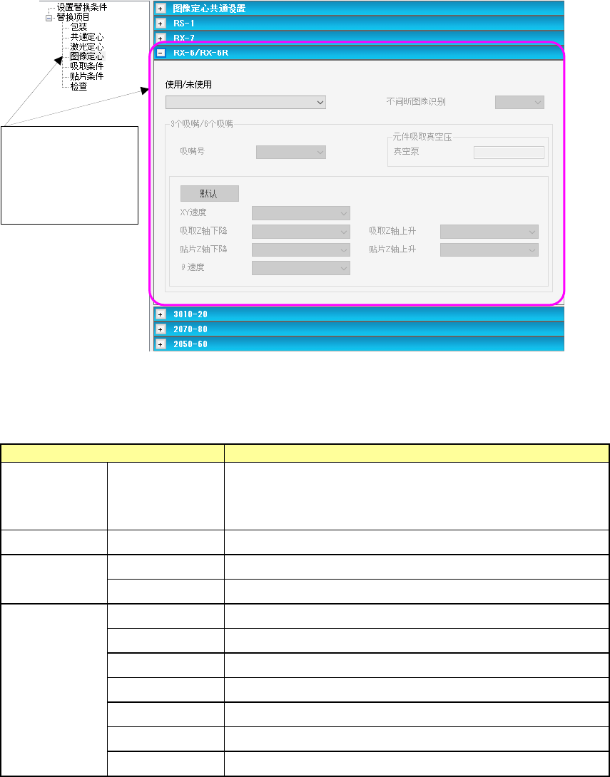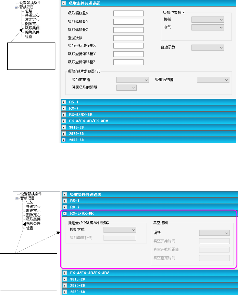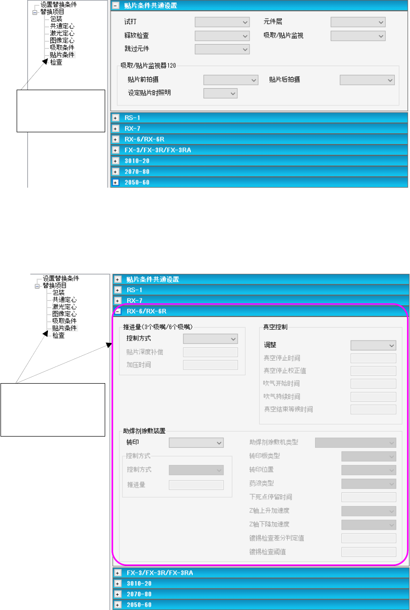 对贴片条件项目替换数据,以有代表性的 RX-6/RX-6R 为例说明如下。