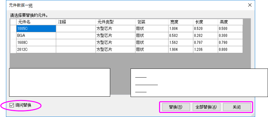 全部替换:开始进行所显示的全部元件数据替换。