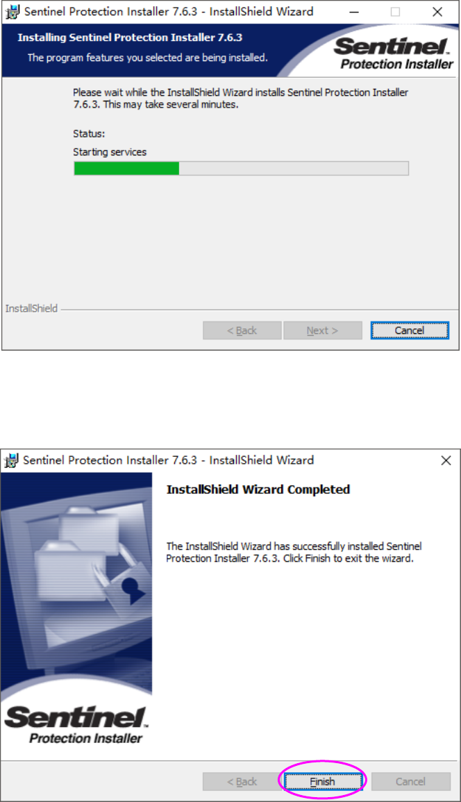 JaNets 使用说明书 2 安装 2-5 (7) 正在执行安装。请稍候片刻。 (8) 安装全部结束后,会显示安装完成画面。 请单击「 Finish 」 。结束保护模块驱动程序的安装。 以上操作结束,保护模块的安装即告完成。