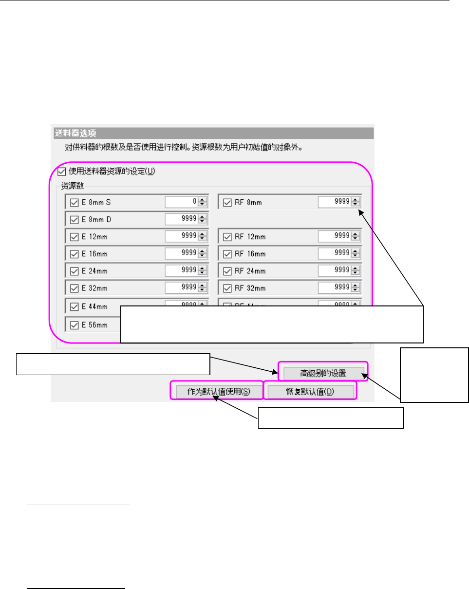 根据选项选择区域的「供料器」,在选项设置区域里显示以下画面。