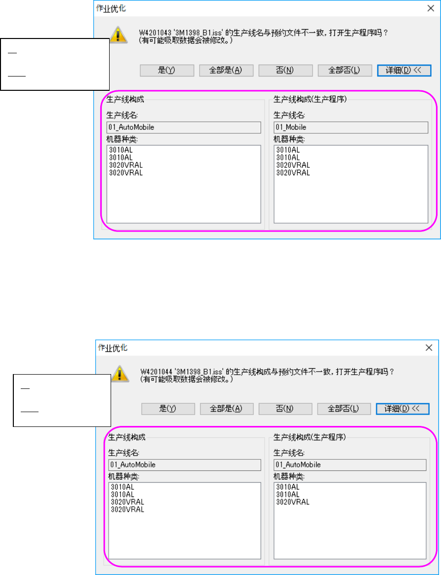 生产程序的生产线名与预约文件的生产线名不一致时,会显示下列信息。