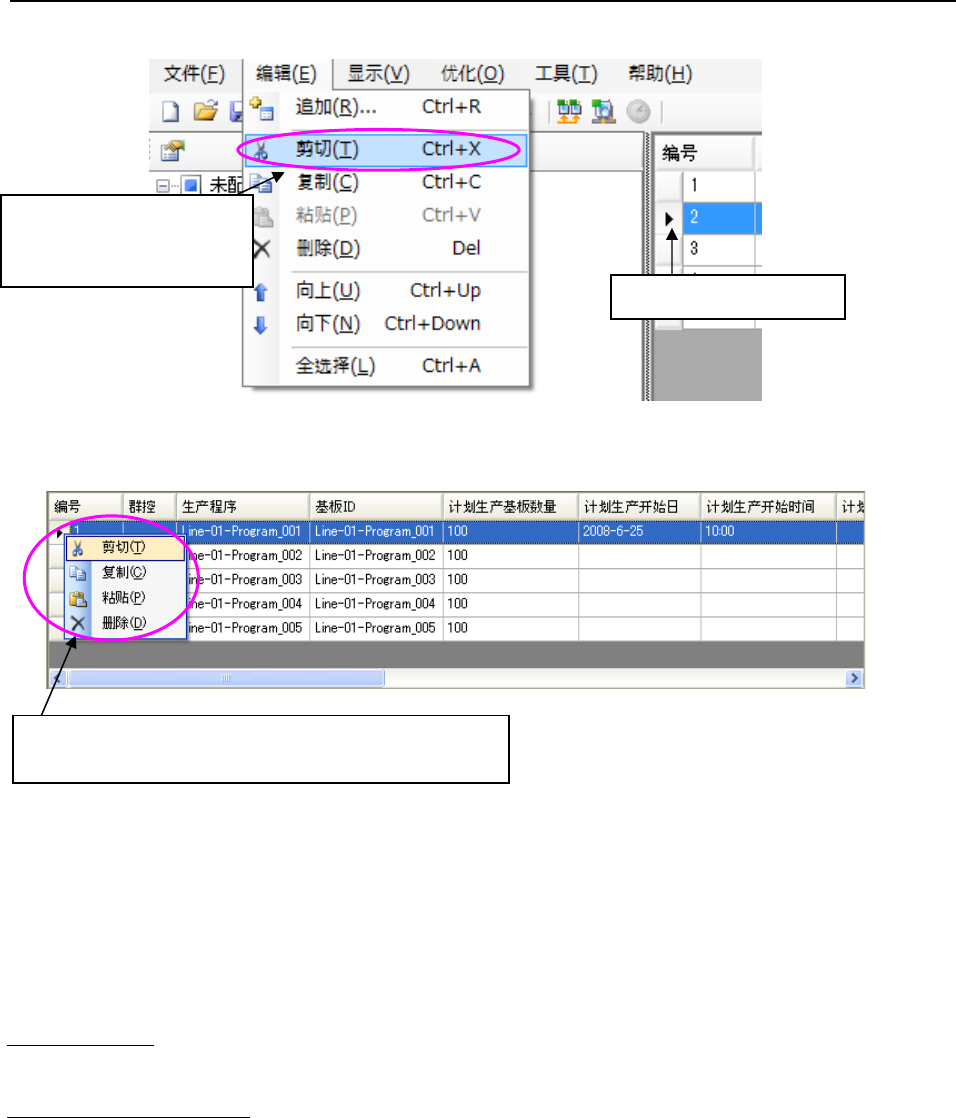 「剪切」时,选择行的预约数据会被复制到剪贴板里,选择行即被删除。