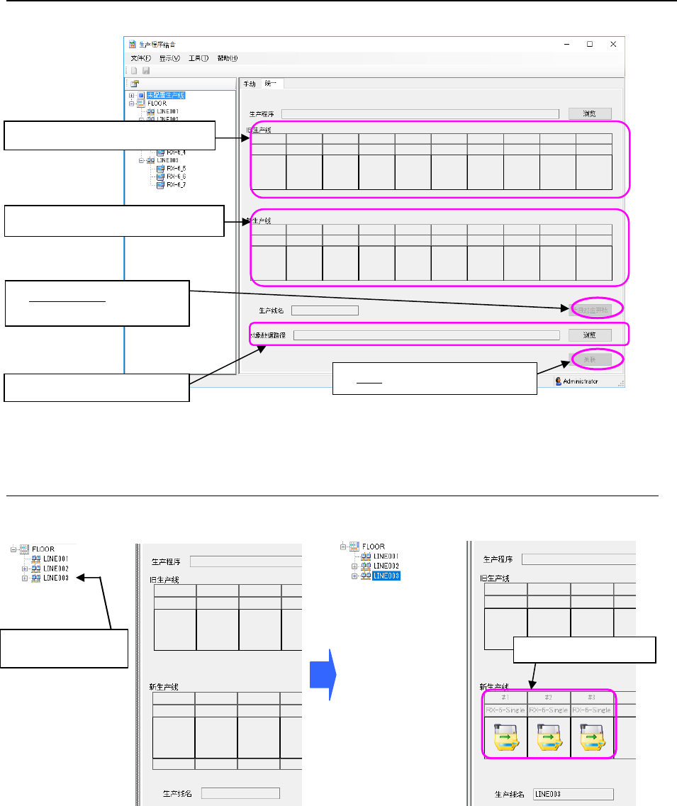 按下面①~⑤的顺序进行操作。初始显示时旧生产线、新生产线均显示空白。