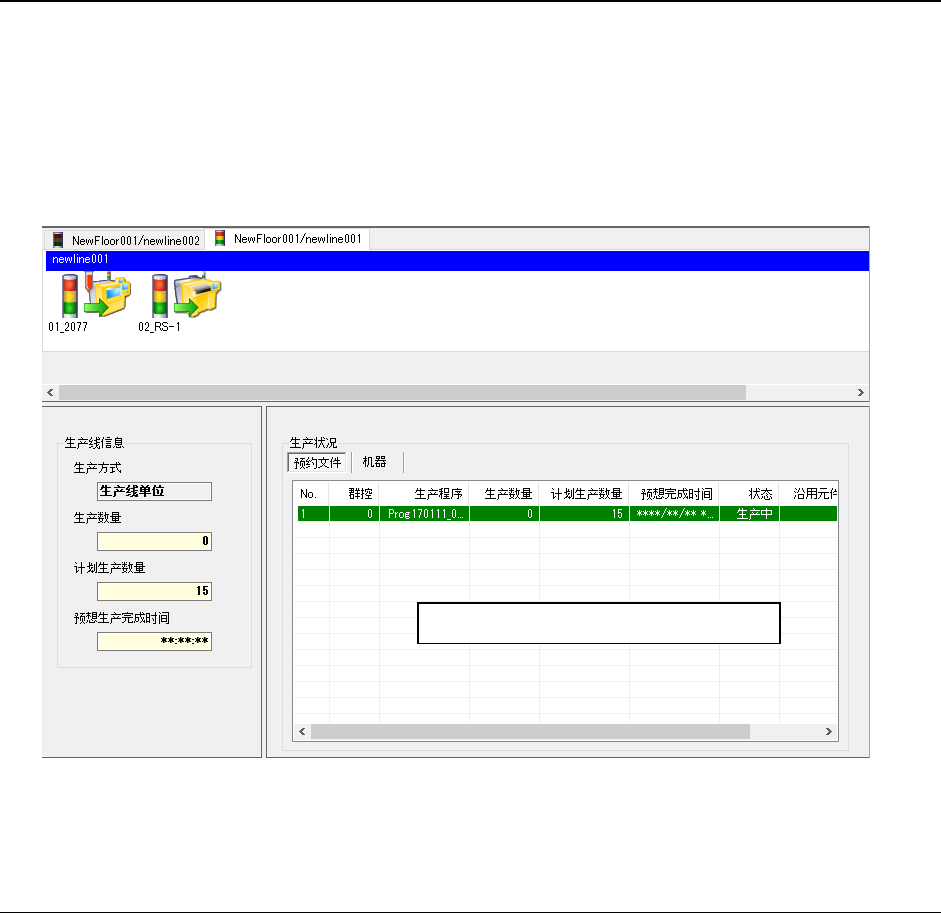 ※ 生产程序被读入后,生产线监视器的「生产状况」会显示出指定的生产程序的生产状况。
