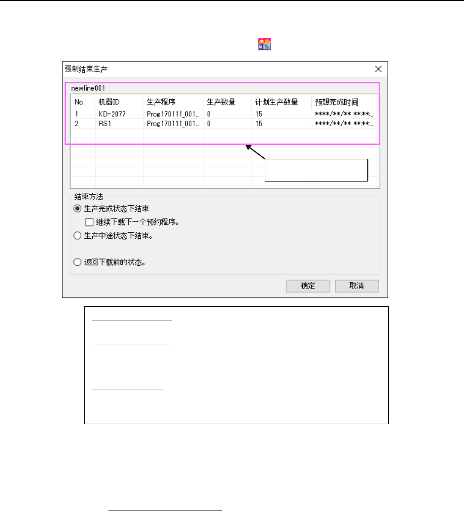 ※ 「生产完成状态下结束」的功能,只在机器单位生产时显示。生产线单位生产时不显示。