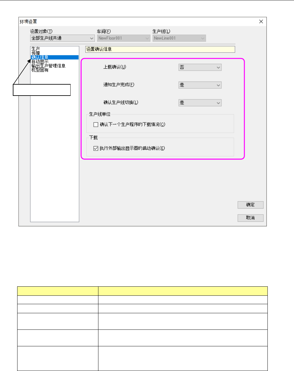 确认生产线切换 读入激活生产线以外的生产程序、预约文件时,设置是否显示确认