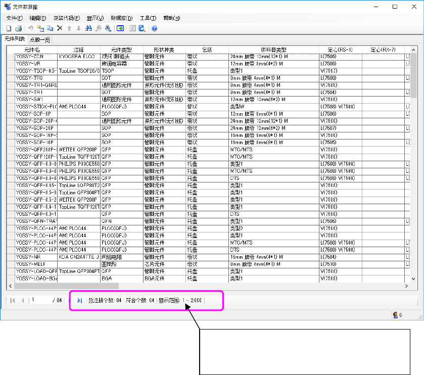 显示范围:符合的元件数据的列表显示范围