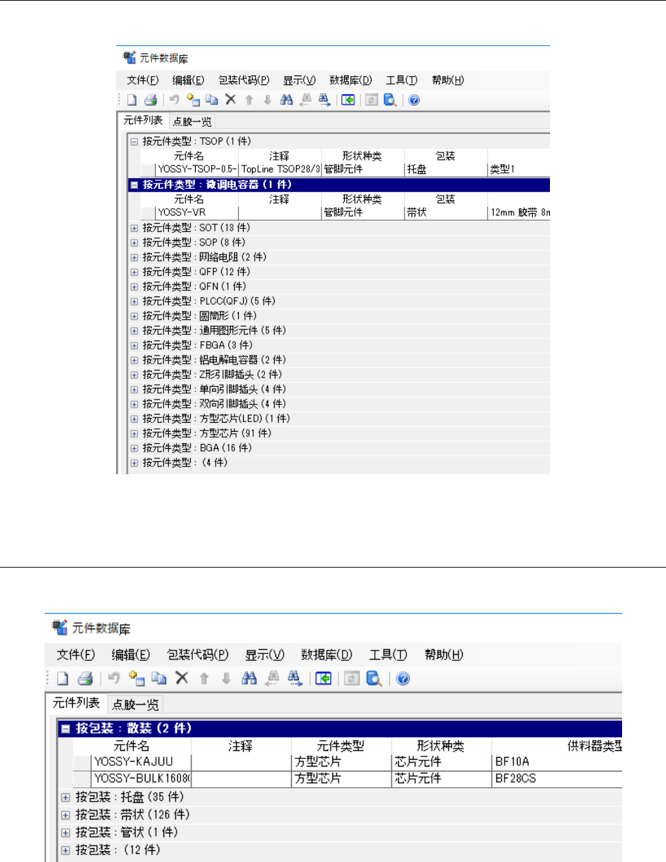 点击「显示」‐「按包装」,可按每种包装显示元件数据一览/元件代码一览画面。