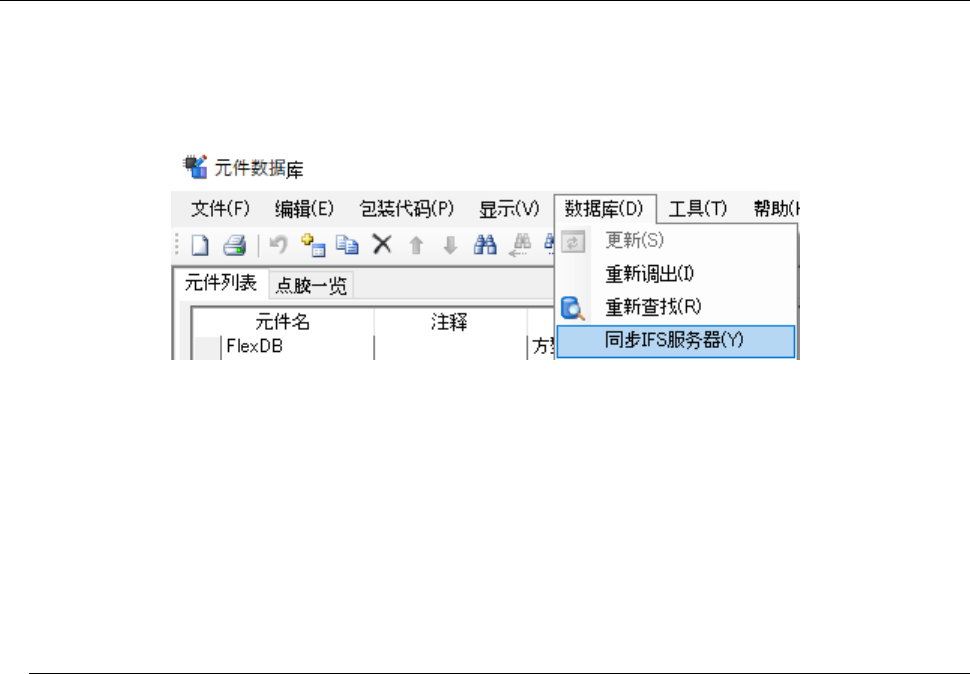 对 IFS 服务器的同步处理,通过选择菜单的「数据库」‐「同步 IFS 服务器」便可执行。