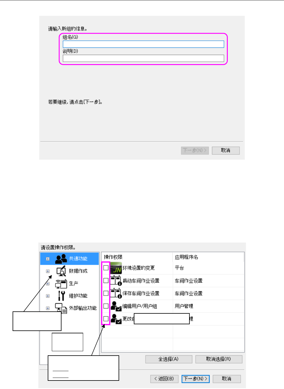 ※ 变更当前登录中的用户所属组的操作权限时,其新操作权限在下一次各程序启动时才有效。